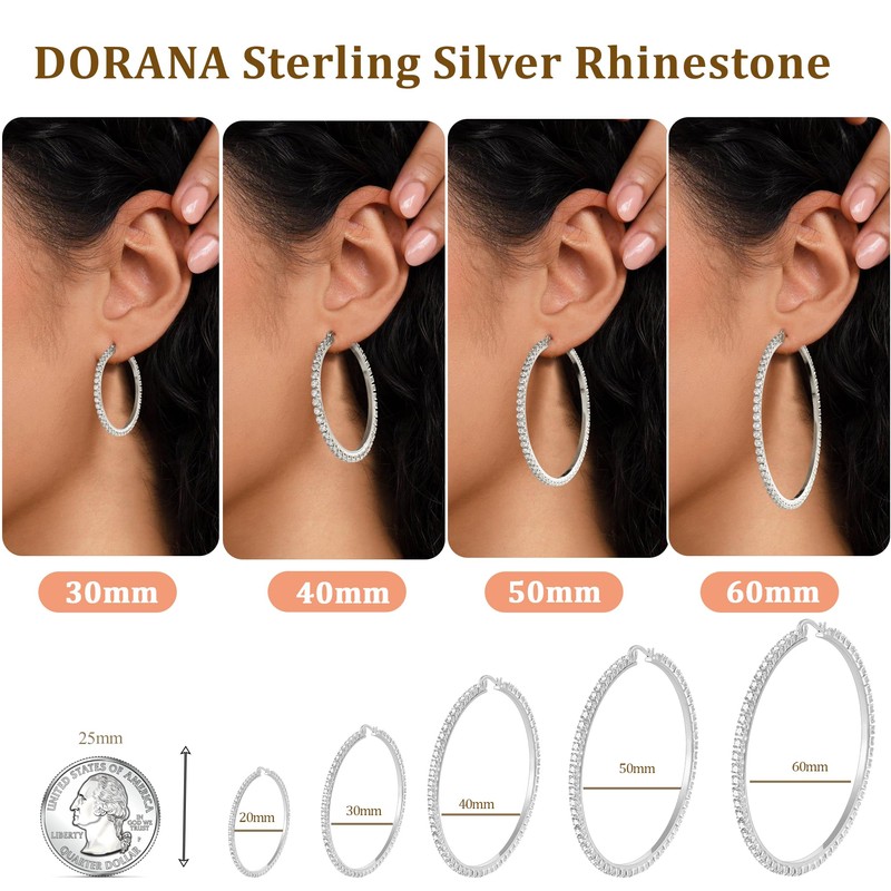 DORANA 925 Sterling Silver Hoops Earrings for Women Large Rhinestone Hoop Earrings Lightweight Hypoallergenic Big Silver Cubic Zirconia Earring Thin Rhinestone Hoops Jewelry Gifts