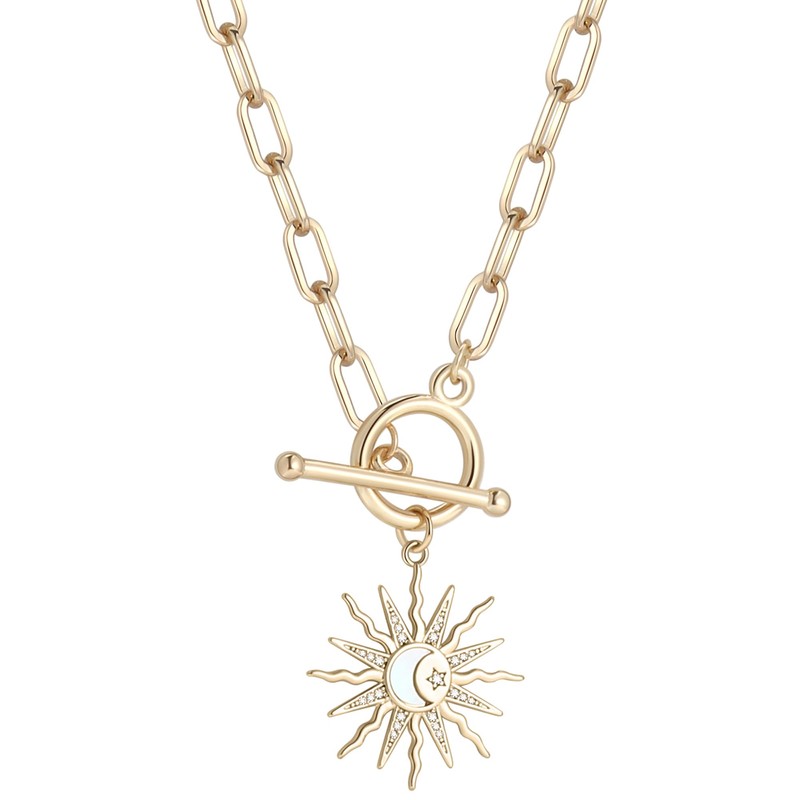 DoreenBox Paperclip Chain Necklace for Women, 18K Gold Plated Paperclip Toggle Chain Link Necklace with Sun Moon Star Compass Flower Charm Pendant(Sun)