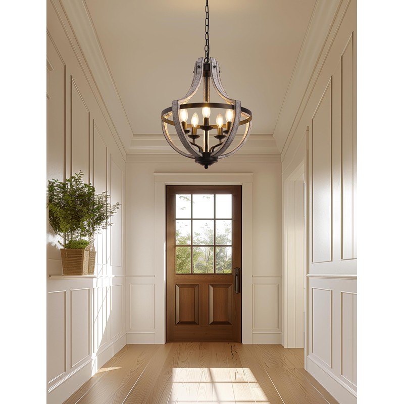 • 【Rustic Grey Wood Farmhouse Design】This modern farmhouse chandelier combines rustic grey wood with a geometric design, bringing farmhouse charm and modern elegance to your home. It fits various interior styles, making it a versatile choice for any space