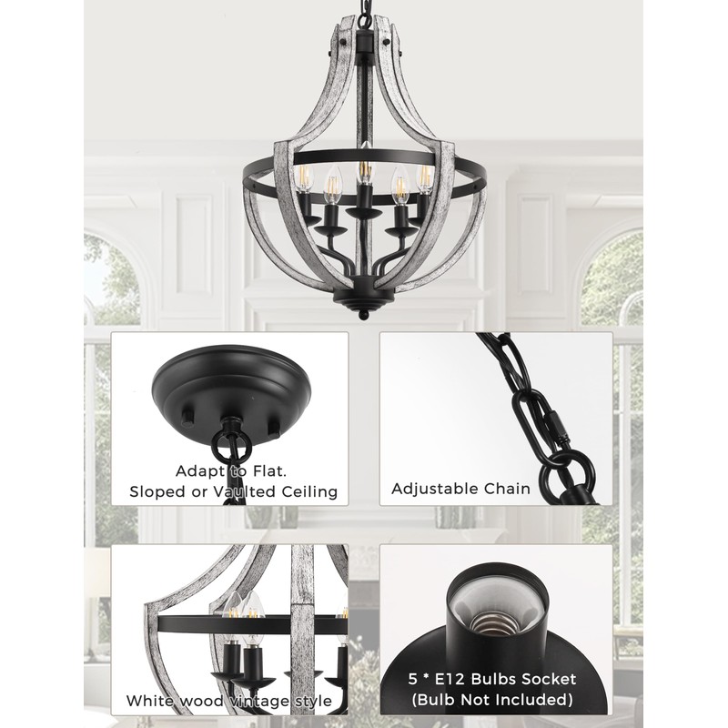 • 【5-Lights for Ample Illumination】Equipped with five E12 light sockets (bulbs not included), the rustic chandelier provides ample, warm illumination for dining rooms, kitchens, and more, creating a cozy, inviting atmosphere while offering bright, efficient lighting