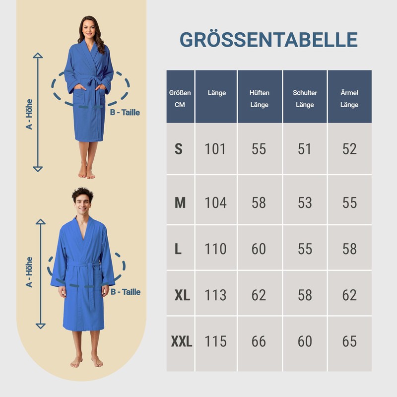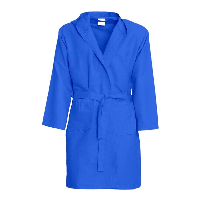 - Practical and absorbent for maximum comfort: equipped with two large pockets, a comfortable hood with double-layered fabric and reinforced seams for optimal absorbency. With hanger for easy storage and waist belt with three loops for a perfect fit on the body.