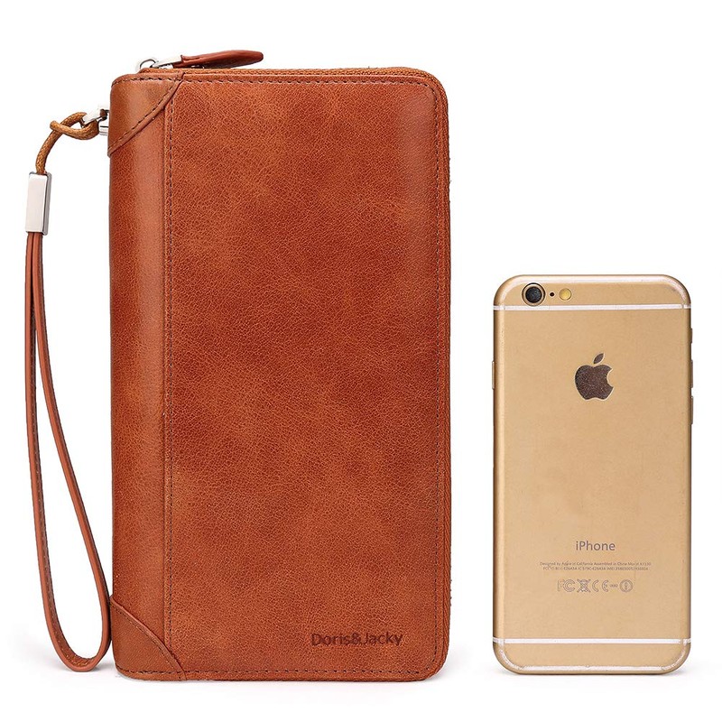 DORIS&JACKY Women Leather Wallet Rfid Blocking Large Capacity Zipper Around Travel Wristlet Bags