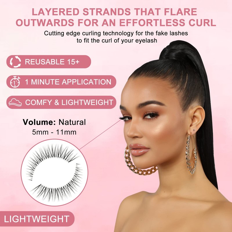 - đź’‹â–¶Short Lashesâ—€Flexible cotton false lashes band with Light Volume, fake lashes can be adjusted and trimed to suit eye curve. The Soft lashes will no longer be a burden on the eyes, giving you a more comfortable wearing experience.