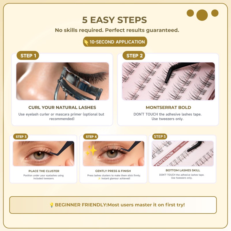 - Abschlusssystem für Selbstvertrauen – Beginnen Sie mit 2–3 Clustern für subtile Verbesserung, bauen Sie auf 4–6 für vollen Glamour. Perfekt für berufstätige Mütter, die ihr Selbstvertrauen wiederentdecken. Inklusive professioneller Pinzette und Backup-Kleber