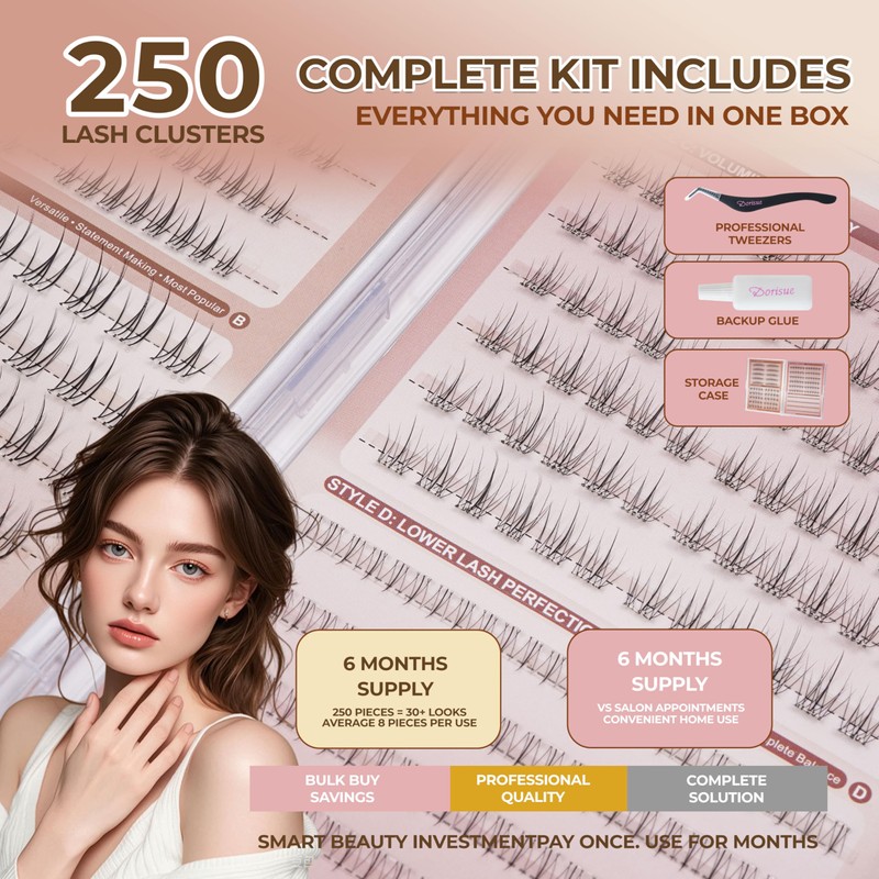 - BULK-BUY BEAUTY INVESTMENT - 250 Cluster = 6 Monate atemberaubende Wimpern für einen geschäftigen Lebensstil. Das sind mehr als 30 komplette Looks für jeweils weniger als 1 $. Hören Sie auf, ständig nachzubestellen – dies erledigt Ihren morgendlichen Kaffee bis zum Wochenendabend