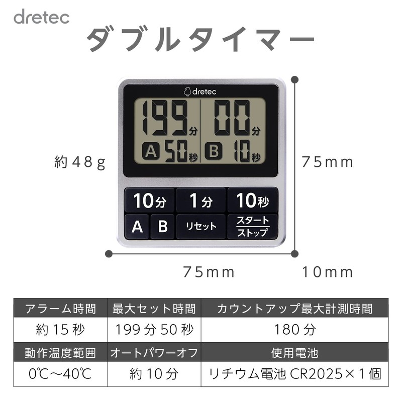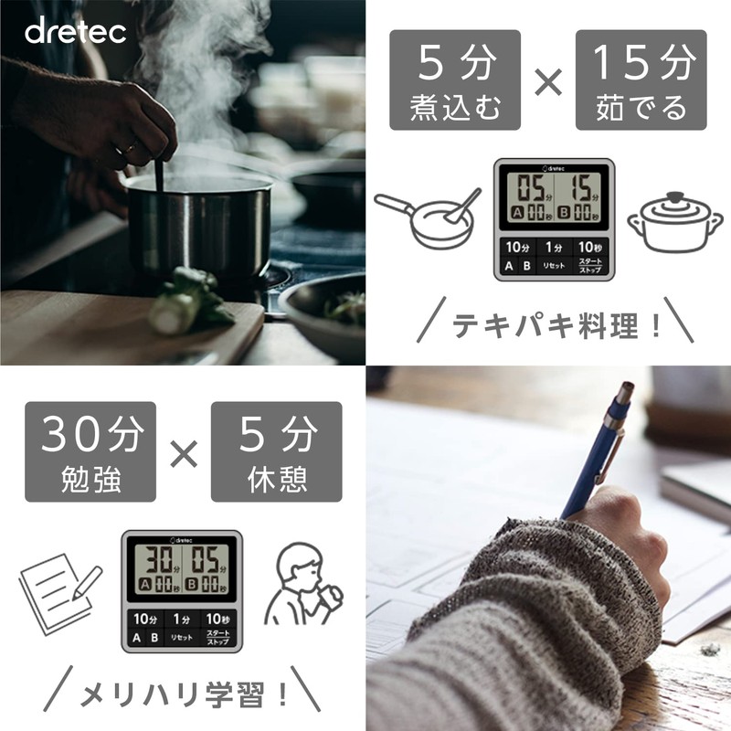 • It can be set for a long period of time up to 199 minutes and 50 seconds, so it is recommended not only for cooking but also for managing time in study