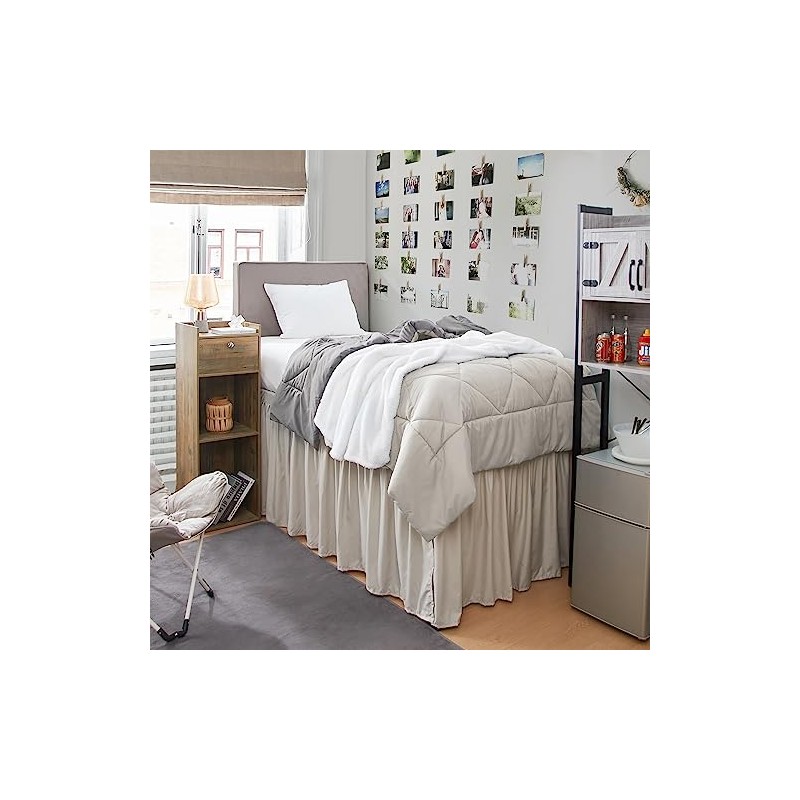 Dorm Sized Bed Skirt Panel with Ties (3 Panel Set) - Stone Taupe - 30" Drop Length
