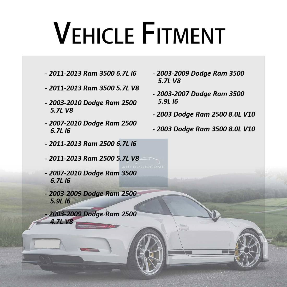 - OE/OEM Part Number: 2011 2012 2013 Ram 2500 5.7L 6.7L V8 l6, 2011 2012 2013 Ram 3500 5.7L 6.7L V8 l6, Power, R/T, ST, Tradesman, Hemi, Laramie, Sport, TRX4, TRX