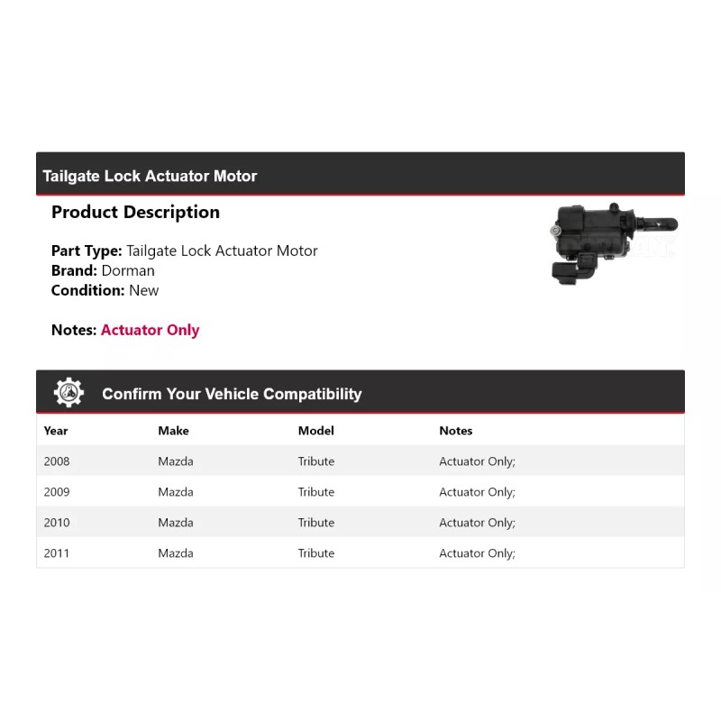 Dorman For 2008-2011 Mazda Tribute Dorman Tailgate Lock Actuator Motor 2009 2010