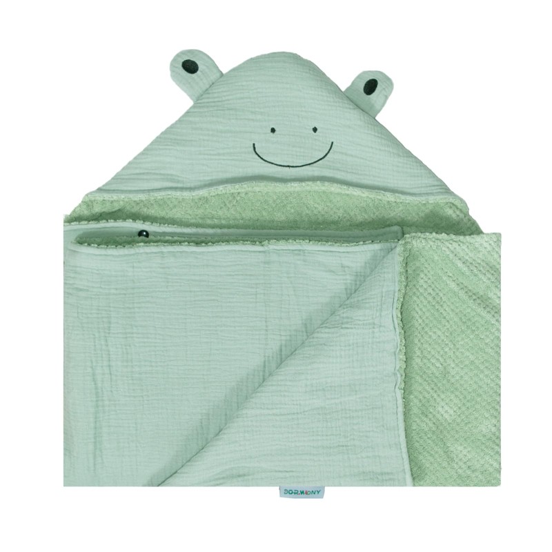 Dormlony Ultra-Soft Hooded Bath Towel with Flannel Linning for Baby and Toddler,55 * 25 inches Warm Baby Absorbent Towels (Frog Design)