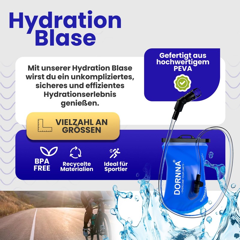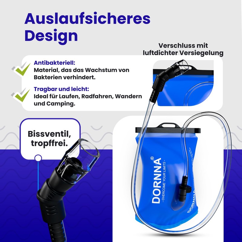 DORNNA Hydration Bladder BPA Free Portable Hydration Pack Heavy Duty for Trail MTB Cycling Mountain 1L