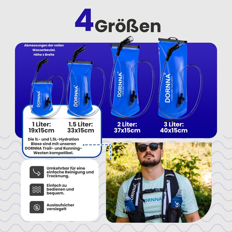 • ✅ AVAILABLE IN 4 SIZES: At DORNNA we offer you options for every need: 1L, 1.5L, 2L and 3L. Choose the size that best suits your activity and stay hydrated at all times.