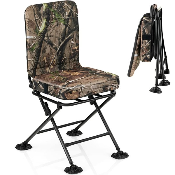 DORTALA 360 Degree Swivel Hunting Chair, Portable Hunting Blind Chair w/All-Terrain Foot Pads, Padded Cushion, Folding Deer Hunting Seat for Blinds, Camping, 330 LBS Weight Capacity, Camouflage