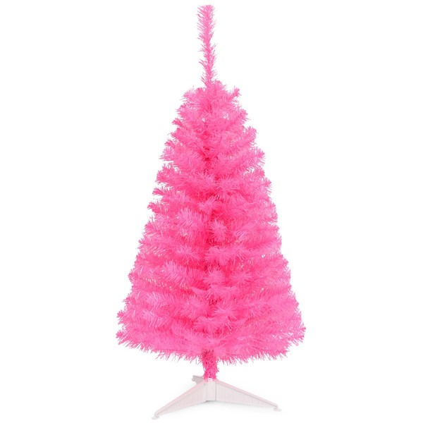 DORTALA Artificial Christmas Tree, 3 FT Small Unlit Xmas Tree with Stand, Home Office Festival Decoration, Pink