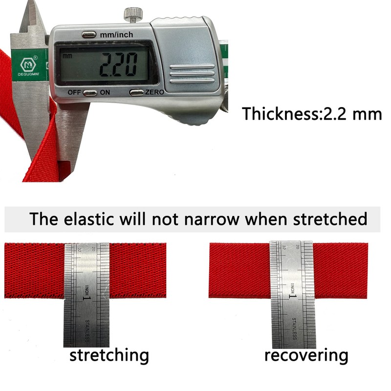 - Good Elasticity:The elastic strap in the range of allowable tensile elastic deformation, can easily restore the original length without deformation. The elastic will not narrow when stretched making it perfect for exposed waistbands on a gathered skirt or pants.