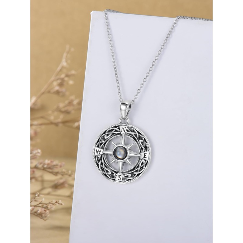 Dorunmo Compass Necklace I Love You Necklace 100 Languages Sterling Silver Projection Pendant Compass Necklace for Women Celtic Knot Necklace Valentine's Day Anniversary Birthday Jewelry for Her