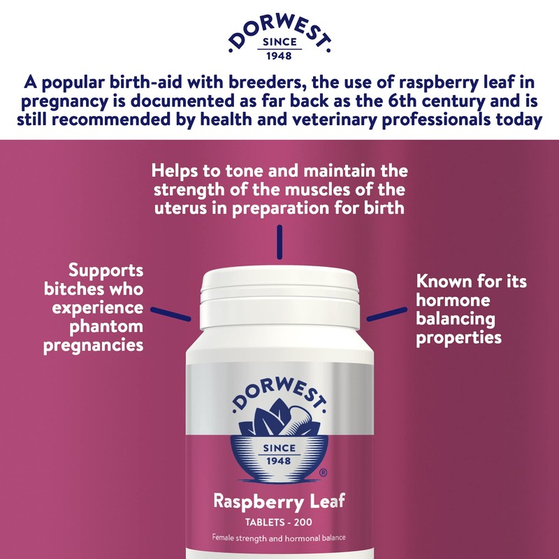 - RASPBERRY LEAF TABLETS FOR DOGS: naturally supporting dog pregnancy, Dorwest Raspberry Leaf Tablets help to tone and maintain the strength of muscles in your pet’s uterus in preparation for birth and whelping