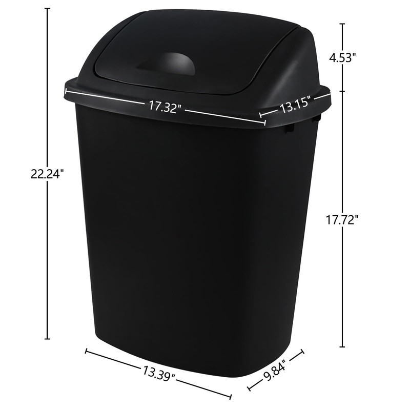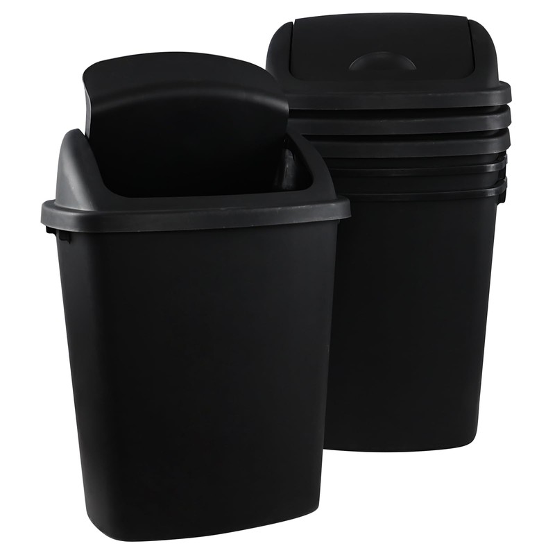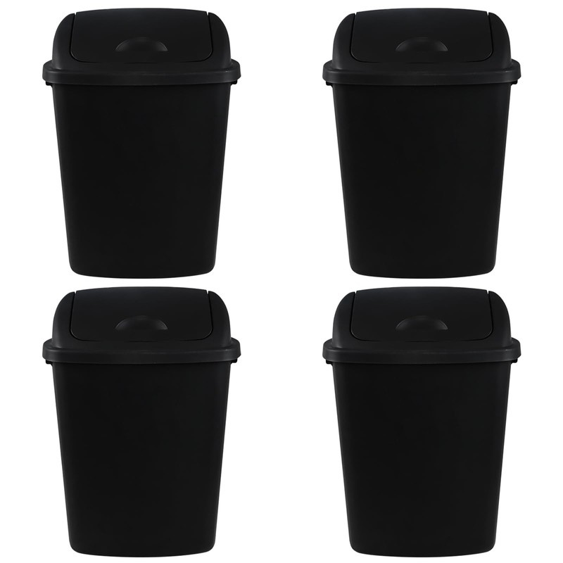4-Pack Large Plastic Trash Can with Swing Lid in Black