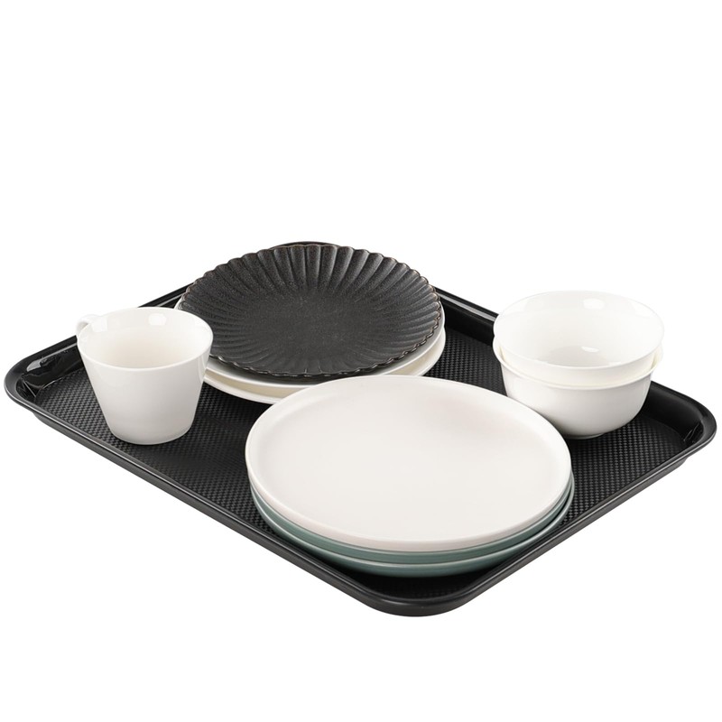 Doryh 6 Pack Serving Trays for Eating, Plastic Fast Food Serving Tray, Black