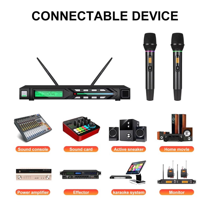 - Stage performance: singing, small items, theater, etc. It allows the actor to move freely on the stage without the restriction of cable and guarantees the sound quality transmission. In conference rooms, briefrooms, and more, the one-toe-down wireless microphone allows for easy interaction with multiple speakers and increased meetings