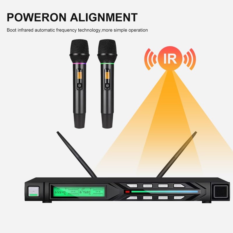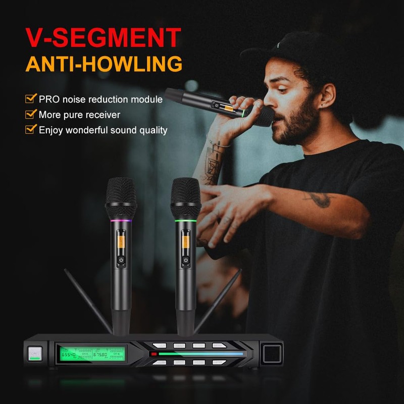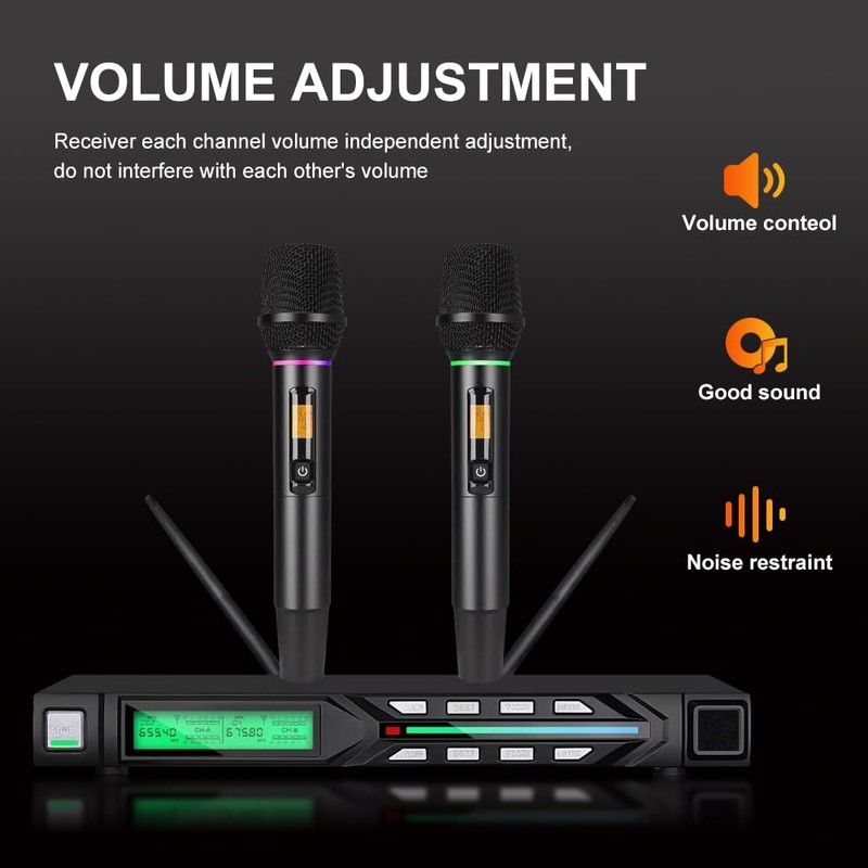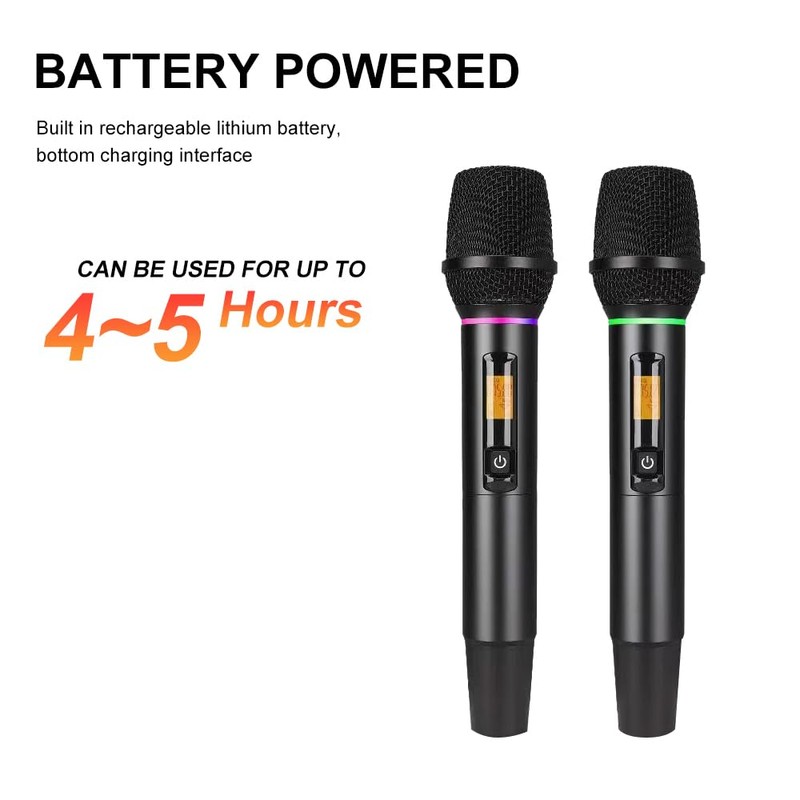 Doslnlya NG-99 Wireless Microphone System with Two Metal Microphones,UHF Handheld Wireless Moving Coil Gradient Colored Microphone for Home Karaoke, Conference, Party, Church, DJ, Wedding