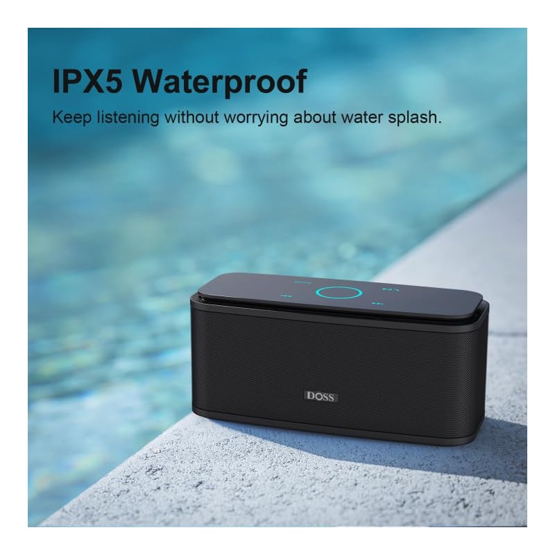 - Water-resistant Protection: With IPX5 Water-resistant, the DOSS Soundbox Touch speaker can work against water and other liquids' gentle splash. A good choice for summer days, poolside or beach parties, keep the music on your way.