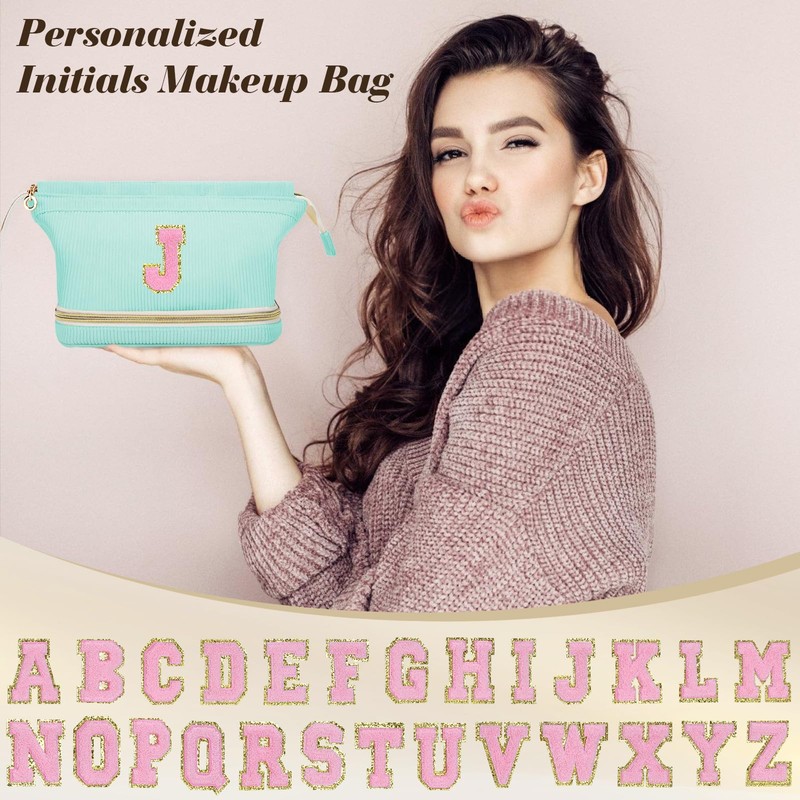 - 【26 Initials Design】: Featuring the Personalized A-Z letter design with hearts and love, this personalized makeup bag allows you to add her initials as a thoughtful touch. The durable brushed letters and gold glitter accents give it a unique and stylish look that's sure to impress. Unlike heat transfer printing, the design is long-lasting and won't fade over time.