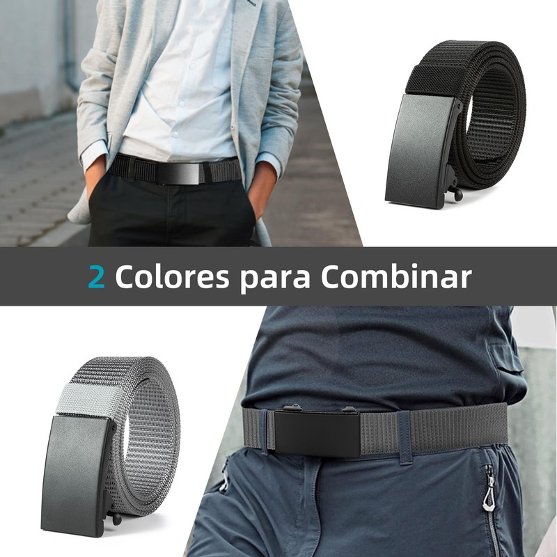 DOSYU Cinturones para Hombre, 2pcs Cinturón de Trinquete de Nailon, Hebilla Metálica Automática, Más Duradero, Cinturón Ajustable y Recortable, Adecuado para Trabajo, Negocios E Informal. (Negro+Gris)