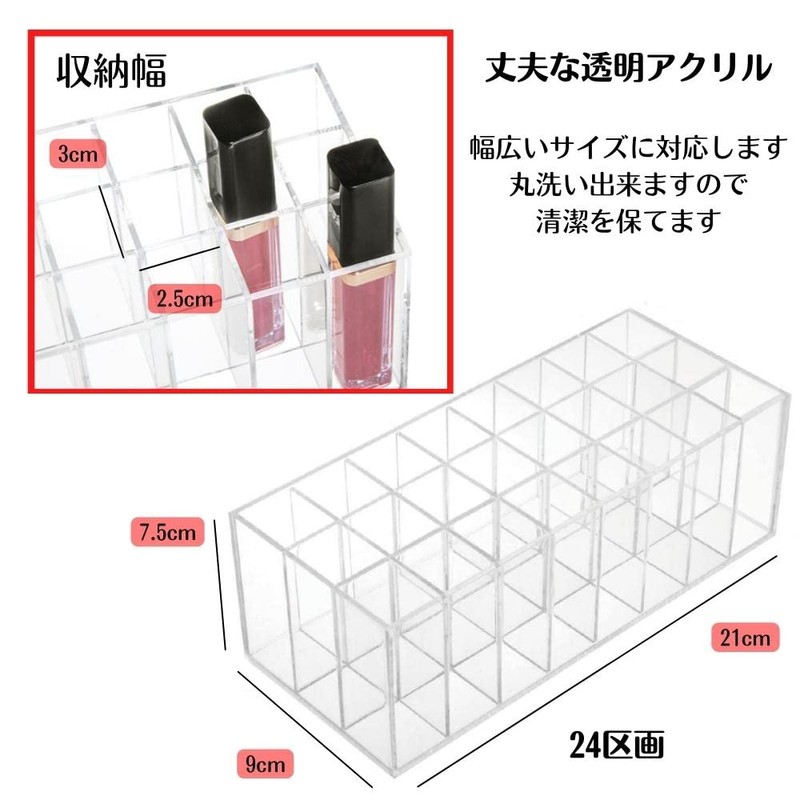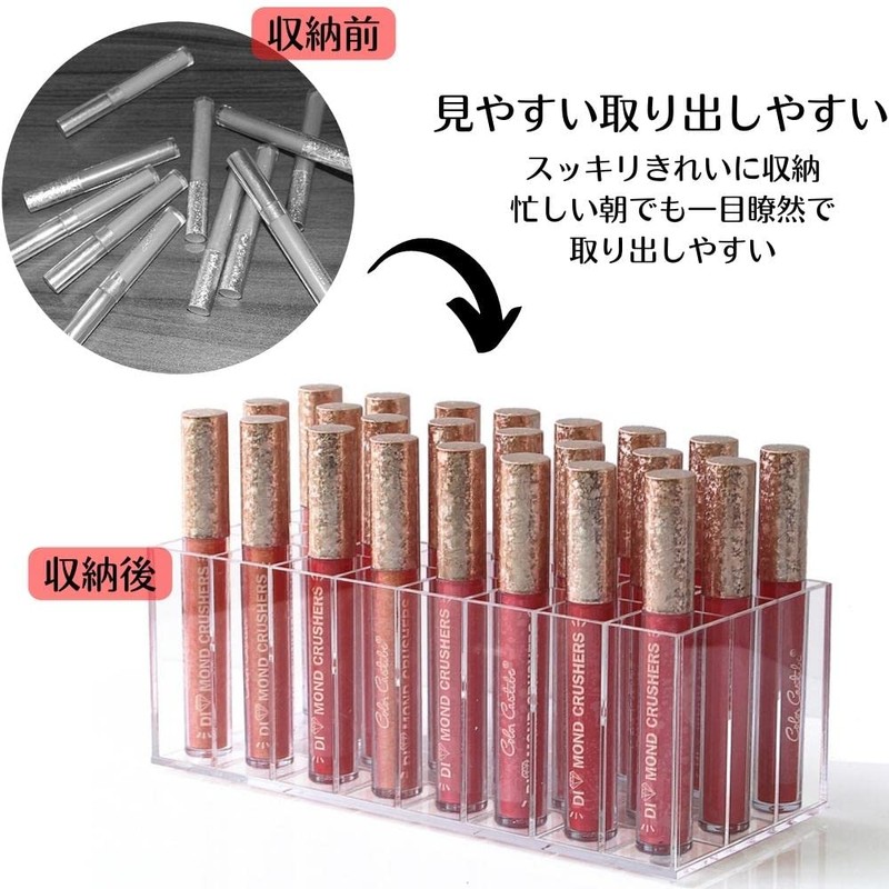 - Acrylic Lip Storage Case with 24 Holders: Large capacity of 24 bottles. Perfect for lips, lipsticks, hair makeup, pens and more