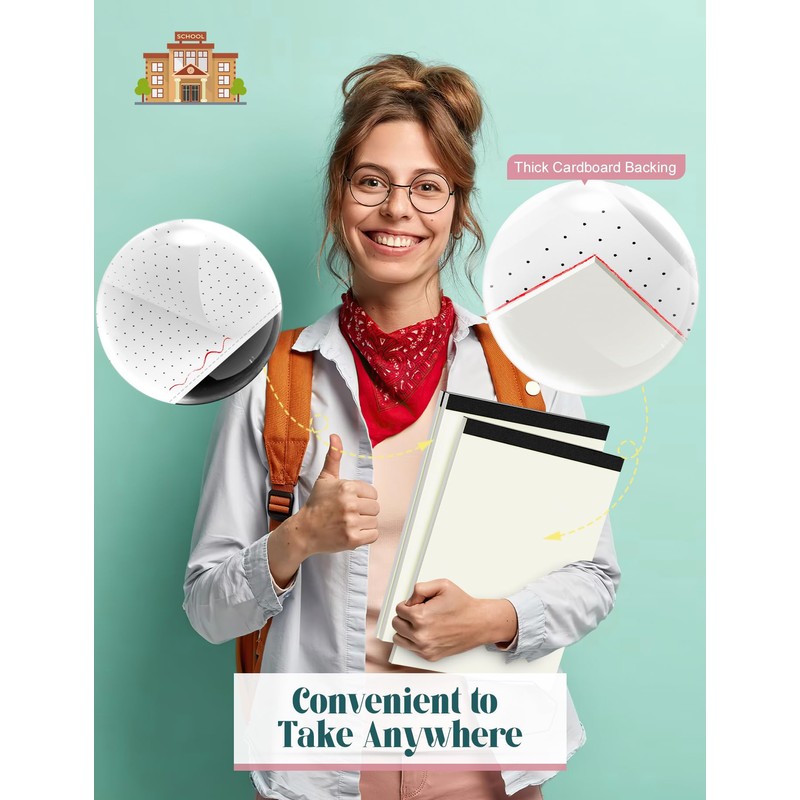 - 【STURDY BACKRING】- The hardboard back of the dot grid paper notebook 8.5 x 11 made of quality card stock material for writing support. The sturdy backing of the dot grid paper notepad paper offers additional stability while you write, draw, and design, 8-1/2 x 11 grid graph paper pad allows you to take notes without a table or desk to lean on. The hard chipboard backing on each pad allows you to take notes without a table or desk to lean on.