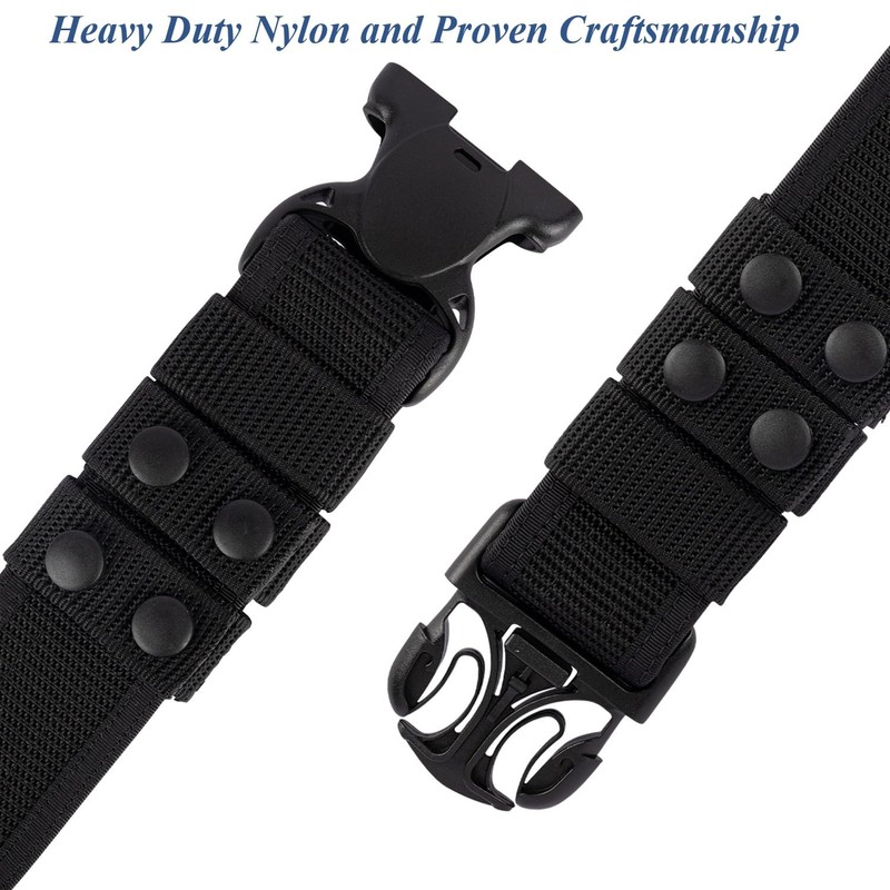 - Heavy duty police nylon duty belt. Stiff enough to support your EDC duty gear such as handcuffs case, radio pouches, mag holder, flashlight holster, key holder, OC carrier by made of 1680D high-density nylon belt and internal stiffener.