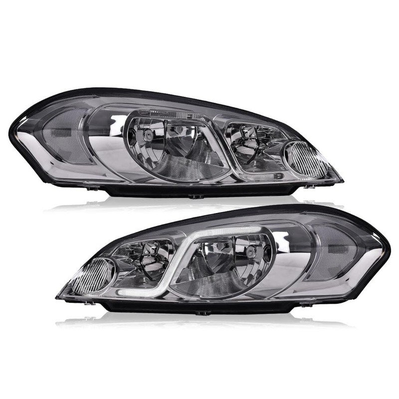 DOTCOM LED DRL Headlights Assembly, Compatible with 2006-2007 Chevy Monte Carlo/2006-2013 Impala/2014-2016 Impala Limited Headlamp, Driver & Passenger Side, Clear lens Chrome Housing Clear Reflector
