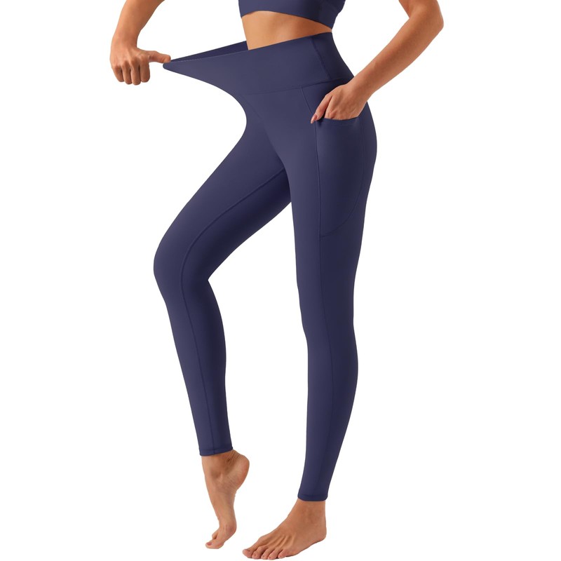 DOTDOG High Waisted Leggings for Women Tummy Control Yoga Legging with 3 Pockets Buttery Soft Compression Workout Yoga Pants (Navy)