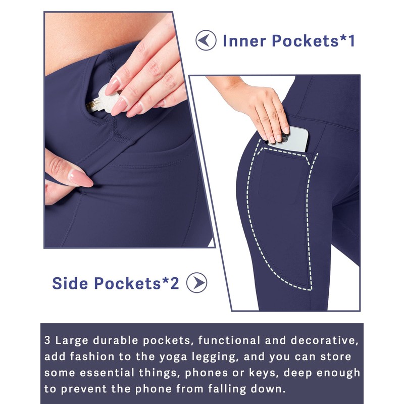 - [2 Side Pockets & 1 Inner Pocket]: These compression leggings have 3 functional pockets instead of 1. Women's yoga pants with 2 large pockets on the side, deepened design, it's deep enough to hold a 6.7" smartphone, and you can store keys when walking your dog or doing exercise. Hidden inner waist pocket, you can put cards or cash, freely your hands