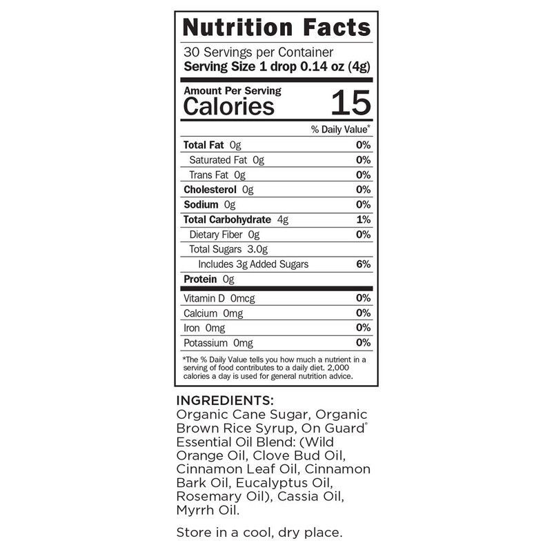 • Proprietary doTERRA On Guard Throat Drop blend of CPTG Certified Pure Therapeutic Grade essential oils including Wild Orange, Clove, Cinnamon, Eucalyptus, Rosemary, and Myrrh in the convenience of an individually-wrapped drop
