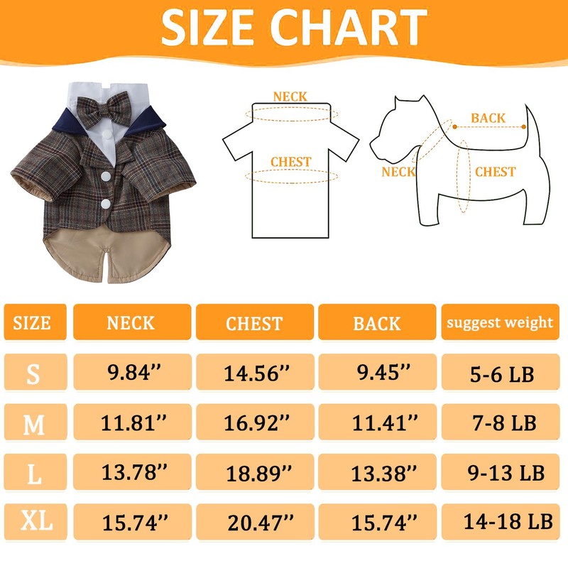 - Size: This pet tuxedo shirt just suit for small dog cats between 5-18 Lb; Please mesure your fur baby before purchasing
