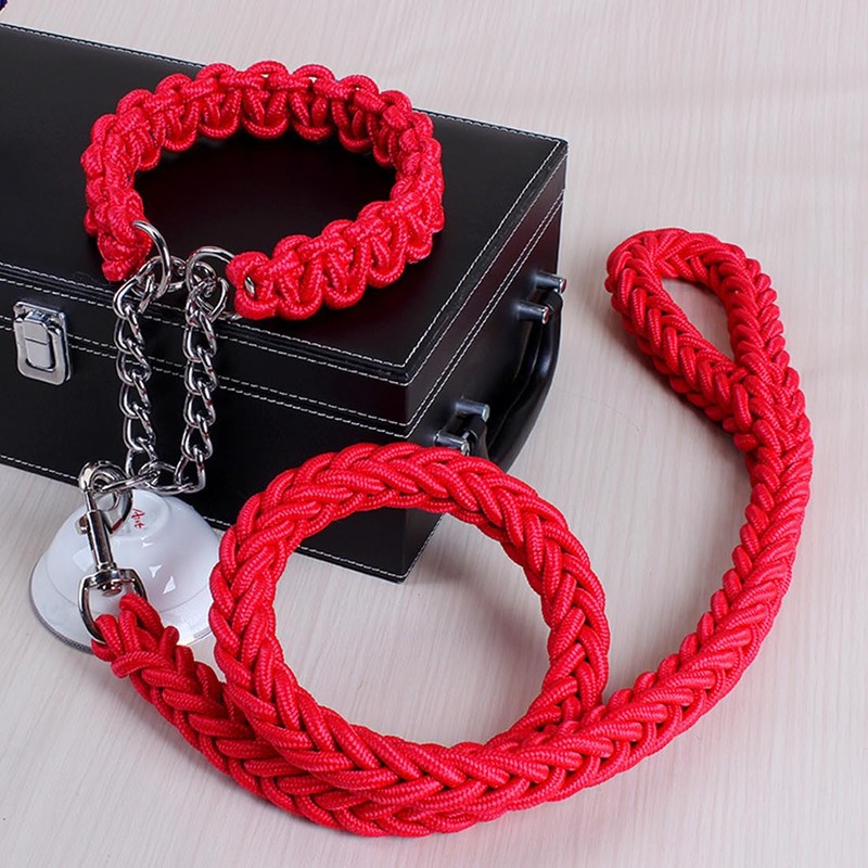 DOTEYAYP Heavy Duty Nylon Dog Collar Leash Set 8 Strand Rope Braided Adjustable Dog Training Collar for Small, Medium, Large Dog (Large, Red)