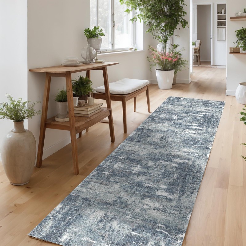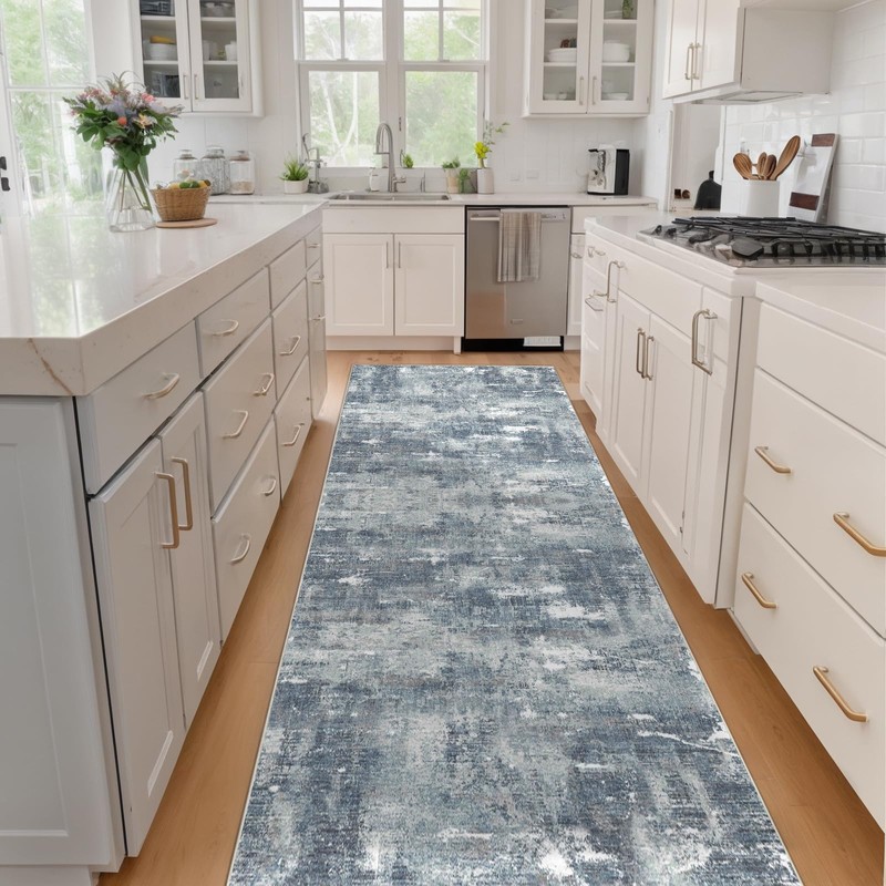 Dotiiorug Modern Abstract Washable Runner Hallway Rug,Low Pile 2x10 Non Slip Carpet Non-Shedding Runner Kitchen Soft Indoor Stain Resistant Rug for Bedroom Laundry Room Blue/Grey