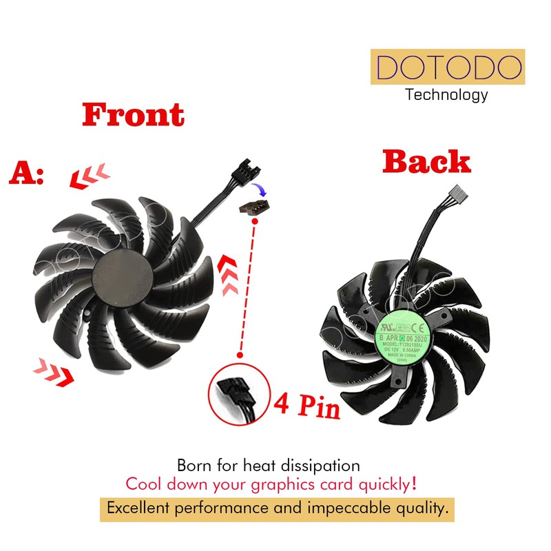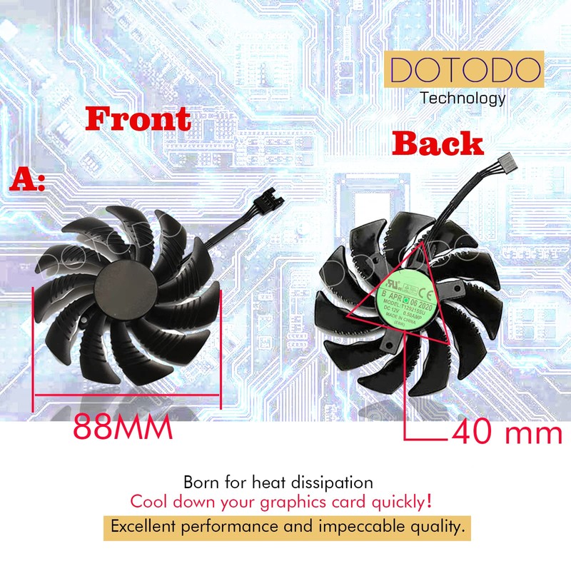 Dotodo 88 mm T129215SU PLD09210S12HH Fan for Graphics Card Cooler for Gigabyte GTX 960 / GTX 1050 / GTX 1060 / GTX 1070 / GTX 1070 ti/RX 470 570 580 | Fan Replace Cooler (Fan A )