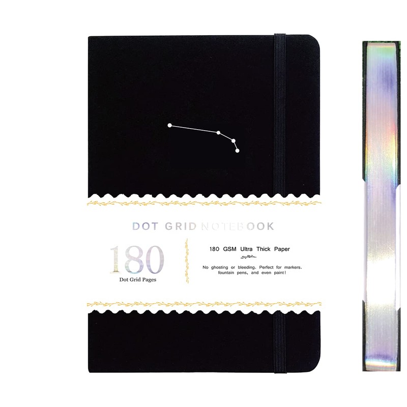 Dotted Notebook Dot Grid Journal Zodiac Collection A5 Hardcover 160 Pages, Size 5.7 x 8.2 Inch, 180 GSM Bamboo Paper, 5 x 5 mm Dots Coloured Silver Edges - (Aries)
