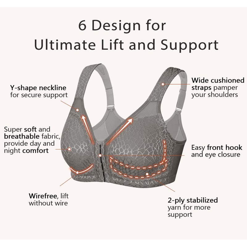 • Front Closure Bra: The full-coverage bra's front closure design with reinforced hooks ensures comfortable wear—perfect for post-surgery recovery or fuller busts. Easily put it on, even with limited mobility, freeing your hands from the struggle