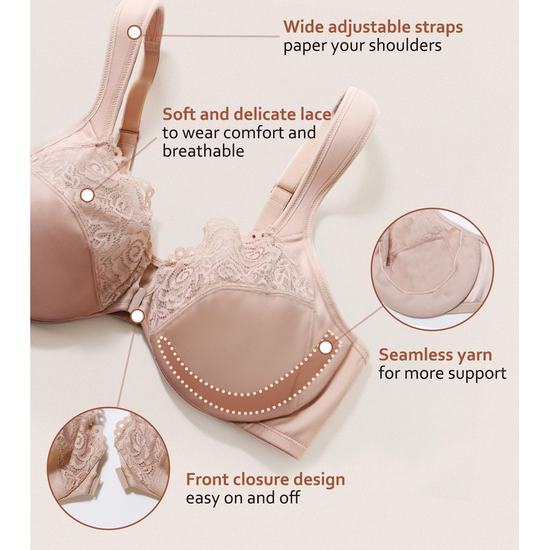 - Wide Shoulder Strap: U-back style and wide shoulder straps, our full figure bra effectively prevents your strap from slipping, digging in and alleviate the pressure for you arm. Give you more comfort support and movability
