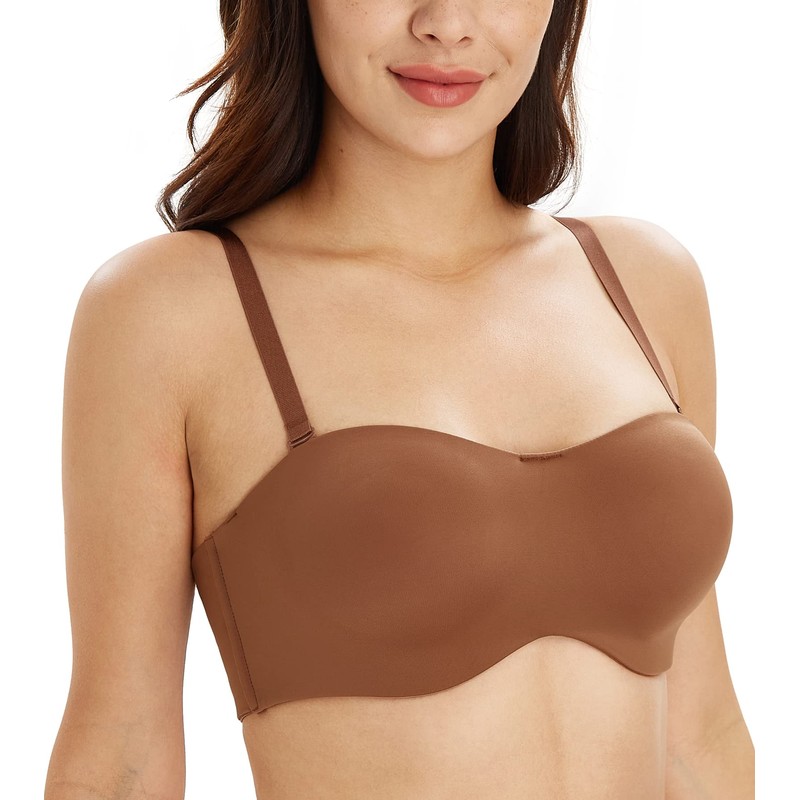 DotVol Seamless Bandeau Unlined Underwire for Large Bust Women's Minimizer Strapless Bra (40C,Choco)