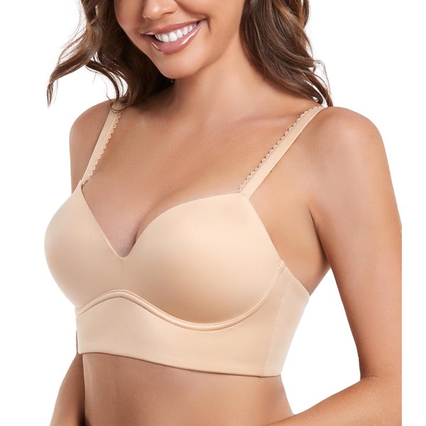 DotVol Women's Full Coverage Wireless Push Up Plunge Bras Plus Size Padded Seamless Support Adjustable Straps(Beige,34A)