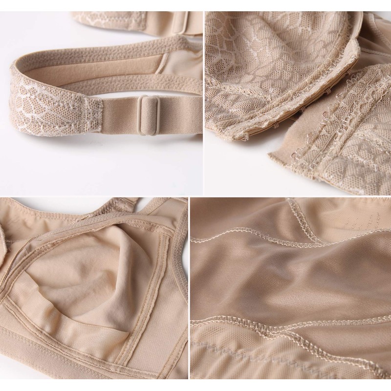 DotVol Women's Full Cup Front Closure Strong Hold Without Underwire Large Sizes Functional Bra, beige