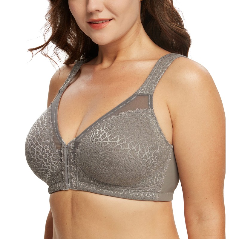 DotVol Women's Full Cup Front Closure Strong Hold Without Underwire Large Sizes Functional Bra, gray