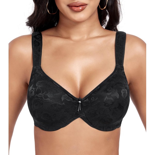DotVol Women's Size Jacquard Underwired Mimimizer Bra Unpadded Classic Everyday Bra, black