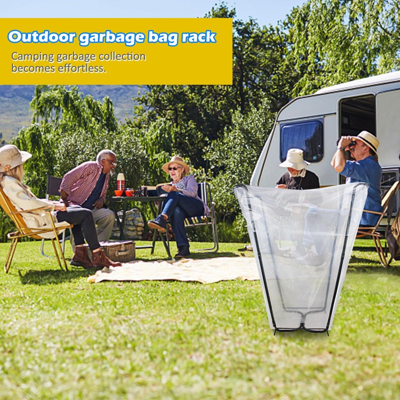 DOUBFIVSY Garden Trash Bag Holder, Heavy Duty Metal Outdoor Leaf Bag Holder Stand Holds 30-45 Gallon Garbage Bags, Multi-Use Bag Holder Frame for Leaves Camping Yard Weeding Lawn Party (1)