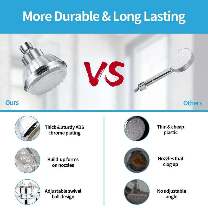 360°Adjustable Multi-angle Joint - The swivel ball joint prevents cracking and leaking and helps you adjust the direction of the water spray for pleasant showering. Can be twisted freely in multi degrees, not a single direction.
