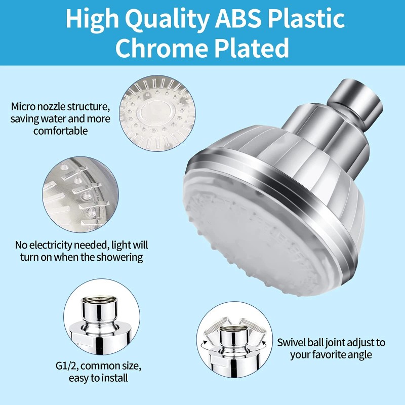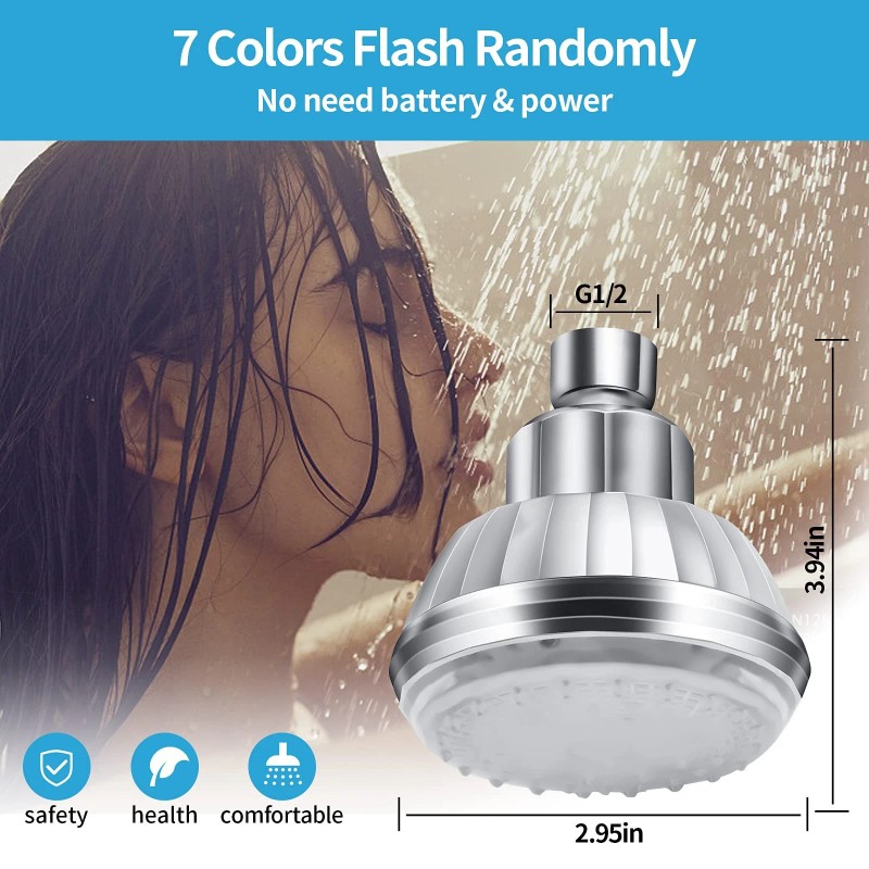 7 Colors Automatically Change - LED color-changing shower nozzles to change color in multiple cycles. LED shower head color change automatically under water pressure, no extra battery or power resource is needed, energy-saving and environment-friendly. (NOTE: The color of the shower LED light cannot be controlled but is automatically changed, gradually blending into one another, fashionable and practical.)